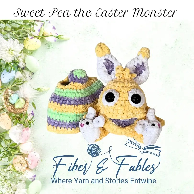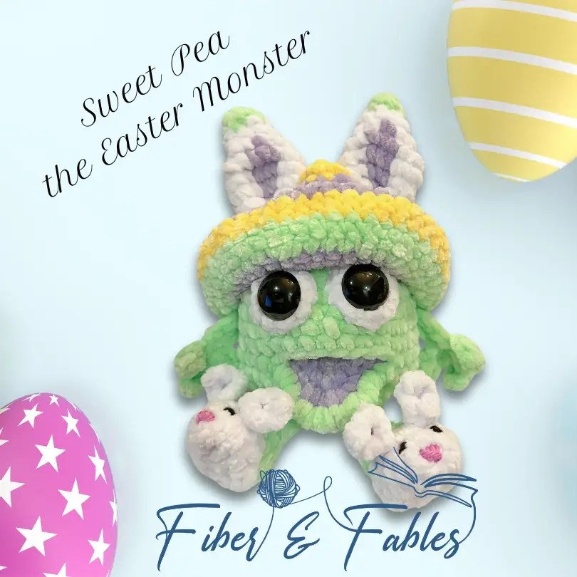 This pattern is a copyright © 2024 of Lauren Giller of Fiber and Fables. Pattern and photos cannot be used for resale purposes. Distribution in part or in whole of this pattern is strictly prohibited. Any Sweet Pea Easter Monster created using this pattern may be sold, but please remember to give credit to Fiber and Fables.